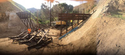 Re-build the debris barriers damaged by fire and storm events, then clear the debris before the upcoming rainy season.